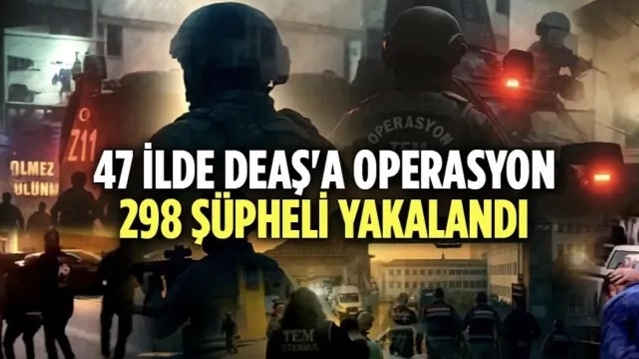İçişleri Bakanı Yerlikaya, sosyal medya hesabından yaptığı açıklamada, 47 ilde terör örgütü DEAŞ'a yönelik Emniyet ve Jandarma tarafından 2 haftadır düzenlenen operasyonlarda 298 şüpheli terör örgütü mensubunun yakalandığını kaydetti.