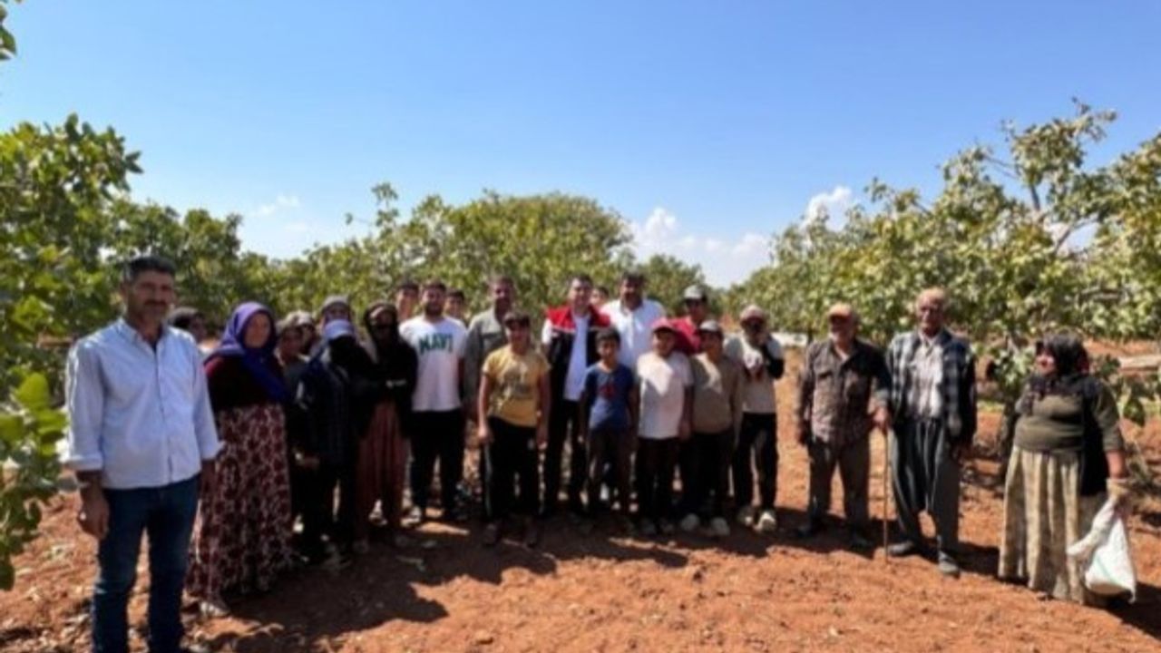 Şanlıurfa Tarım ve Orman İl Müdürü Mehmet AKSOY Çamlıdere Köyü'nde Emin KAYA'nın 45 yıllık 6 bin 500 ağaçlı bahçesinde fıstık hasadına katıldı.