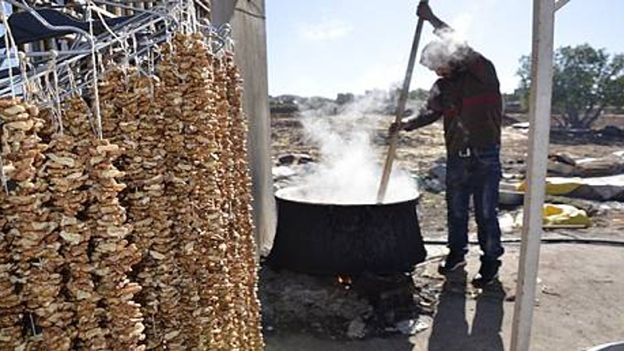Şanlıurfa'nın Siverek ilçesinde bağ bozumunda toplanan üzümler, geleneksel yöntemlerle cevizli sucuk, pestil ve pekmeze dönüştürülüyor