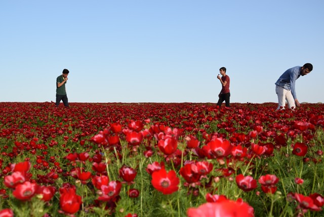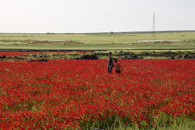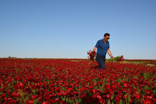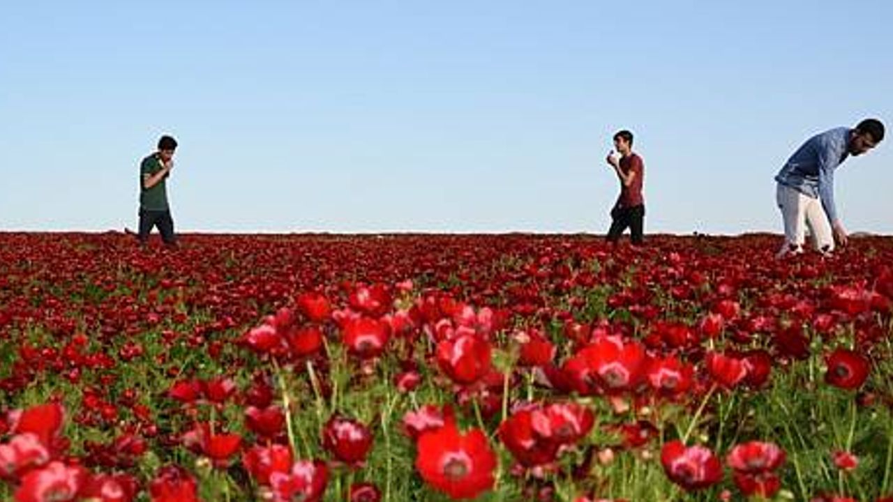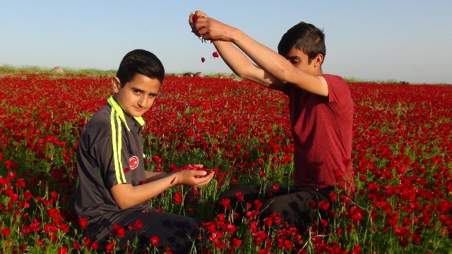 Şanlıurfa'nın Viranşehir ilçesinde de baharla birlikte boş arazilerdeki gelincikler çiçek açtı. Kırmızı, beyaz ve sarı renkteki gelincikler, ilçeyi adeta kızıla boyadı.