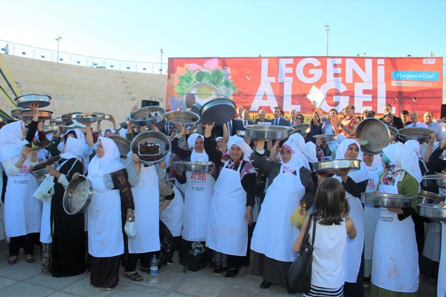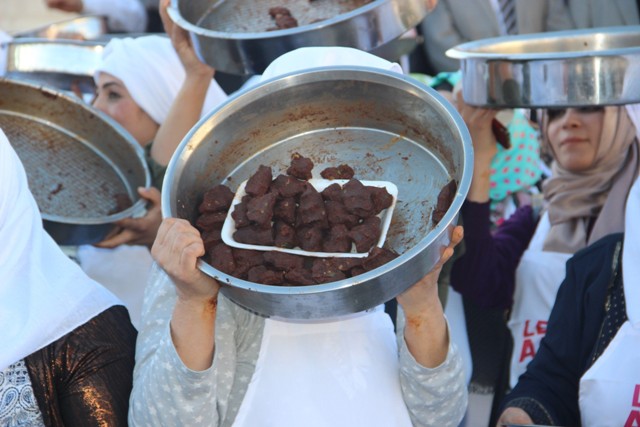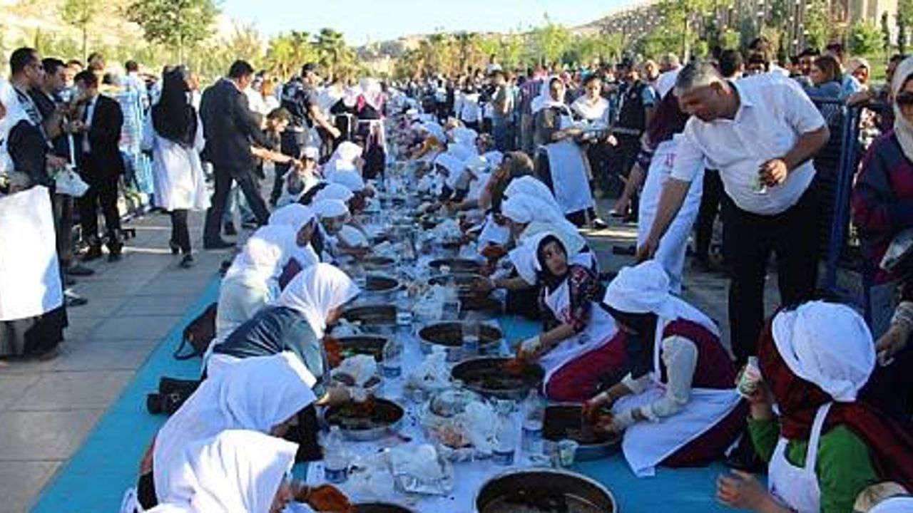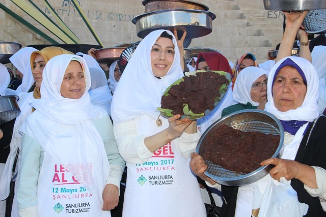 Şanlıurfa'da Turizmi Geliştirme Derneği tarafından "Leğeni al gel" sloganıyla organize edilen etkinlik kapsamında Şanlıurfa'da 400 kadın, aynı anda yöreye özgü lezzetlerden olan etli çiğ köfte yoğurdu