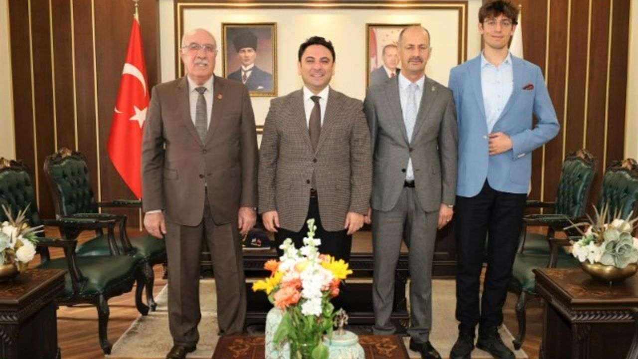 Türkiye Harp Malulü Gaziler Şehit Dul ve Yetimleri Derneği Şanlıurfa Şube Başkanı Mehmet Yavuz ile Şanlıurfa Muharip Gaziler Derneği Başkanı Hasan Aslan, Haliliye Kaymakamı Dr. Muhammed Serkan Şahin"i makamında ziyaret etti.