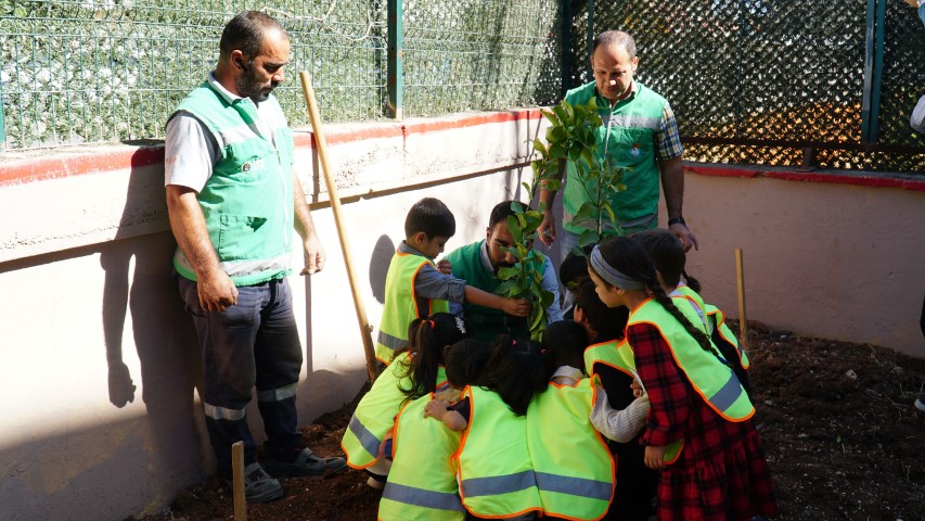 Son olarak, Haliliye Belediyesi'nin Aziz Parmaksız Anaokulu'nda düzenlediği etkinlikte çocuklarla birlikte okul bahçesine ağaç dikimi yapıldı.