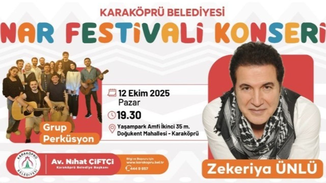 Karaköprü Belediyesi, 12 Ekim 2025 Pazar günü Nar Festivali düzenliyor. Festival, birbirinden renkli etkinliklerle vatandaşlarla buluşacak.