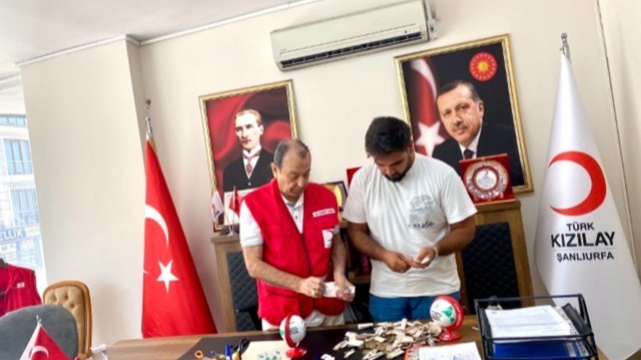 Şanlıurfa'da 12 yaşındaki Muhammet Yusuf Şeker, harçlığından artan parayı kumbarasında biriktirerek toplam 874 TL'yi Filistin'e yardım etmek amacıyla Kızılay Şanlıurfa Şubesine teslim etti.