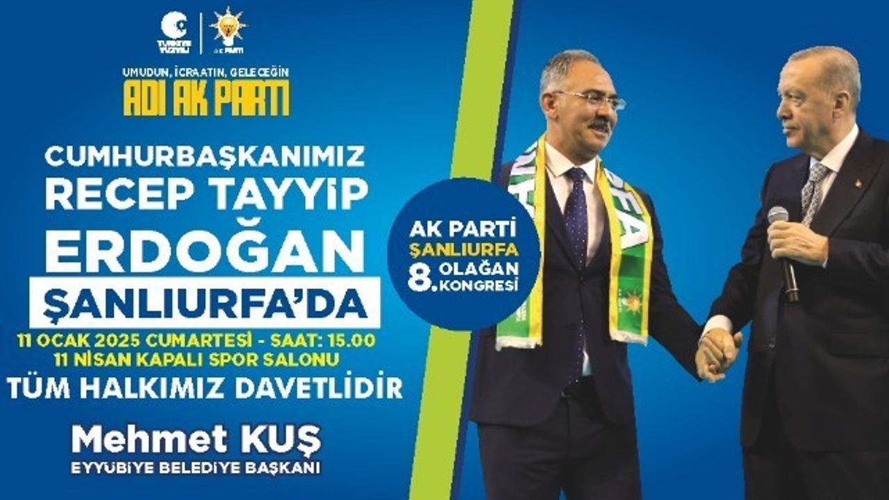 Başkan Kuş, AK Parti Genel Başkanı ve Cumhurbaşkanı Recep Tayyip Erdoğan'ın, yarın saat 15.00"te 11 Nisan Spor Salonu'nda düzenlenecek olan AK Parti Şanlıurfa 8. Olağan Kongresi'ne katılmak üzere Şanlıurfa'da olacağını hatırlatarak, tüm Şanlıurfalıları kongreye davet etti.