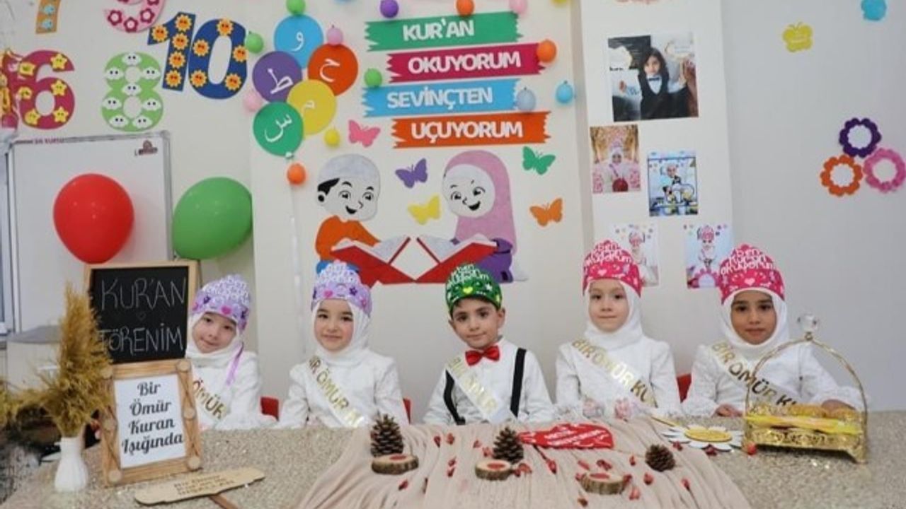 Viranşehir İlçe Müftülüğüne bağlı Yenişehir 4-6 Yaş Grubu Kur'an Kursunda eğitim gören ve Kur'an'a geçen 5 minik öğrenci için "Kur'an-ı Kerim'i Okumaya Geçiş Programı" düzenlendi.