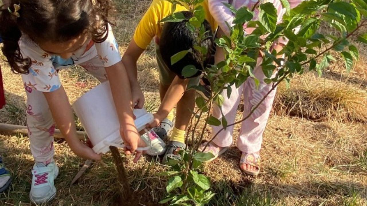 Minik öğrencilere çevre bilinci ve temizliğin öneminin aşılanması için program düzenlendi. Öğrenciler, Kur'an öğreticileri Sümeyye Kanat ve Şerife Aytimur gözetiminde kurs bahçesinde ağaç dikimi gerçekleştirdi.