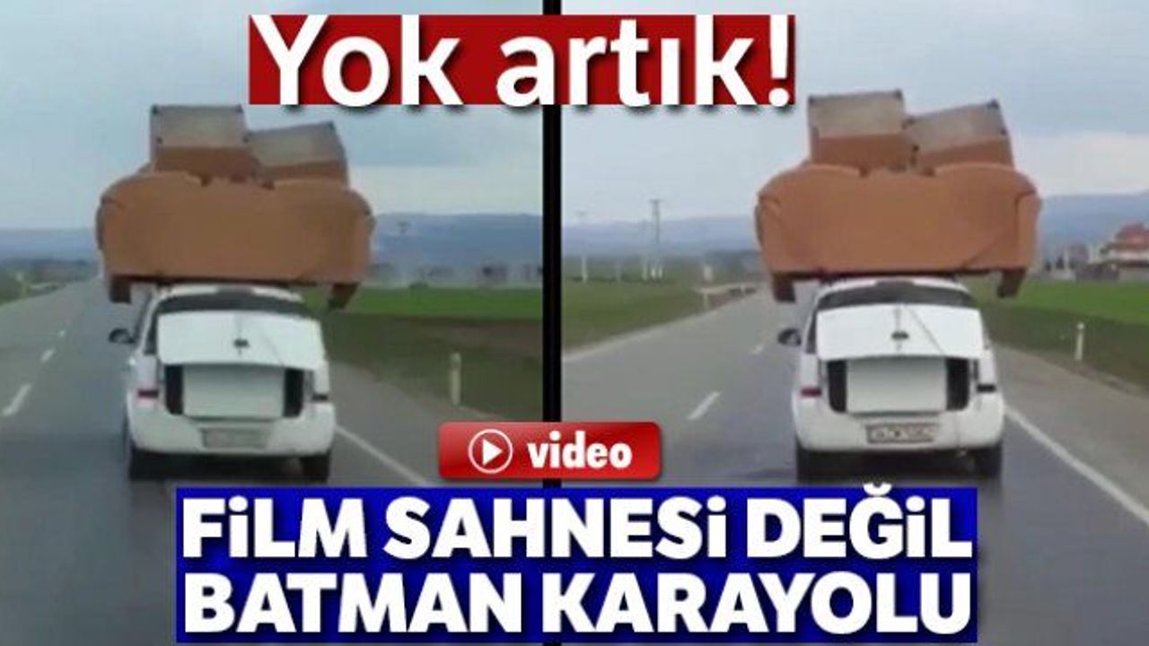 Batman-Hasankeyf karayolunda bir otomobilin üzerinde koltuk takımı ve bagajında beyaz eşya ile seyrettiğini gören vatandaşlar şaşkına döndü. Otomobilin üzerine iple tutturulan koltuk takımının olduğunu gören vatandaşlar, telefonları ile tehlikeli yolculuğu kaydetti. Kamyonete bile zorlukla sığacak koltuk takımının otomobilin üzerine konularak trafiğe çıkılması sürücülerin tepkisini çekti.