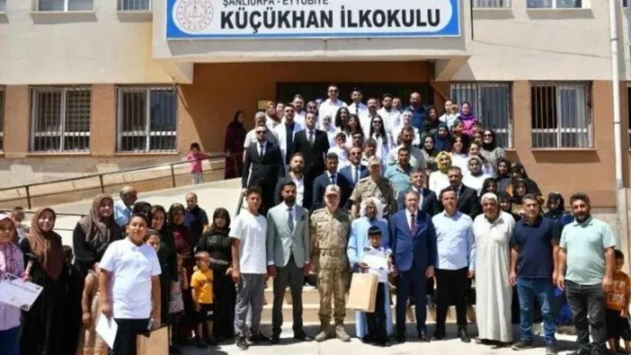 2024-2025 Eğitim-Öğretim Yılı karne dağıtım töreni, Şanlıurfa'nın Eyyübiye ilçesinde bulunan Küçükhan İlkokulu'nda coşkulu bir şekilde gerçekleştirildi. Törene; Şanlıurfa Valisi Hasan Şıldak, İl Jandarma Komutanı Tuğgeneral Mücahit Avkıran, İl Millî Eğitim Müdürü Asım Sultanoğlu ve Eyyübiye İlçe Millî Eğitim Müdürü Ahmet Demir katıldı.