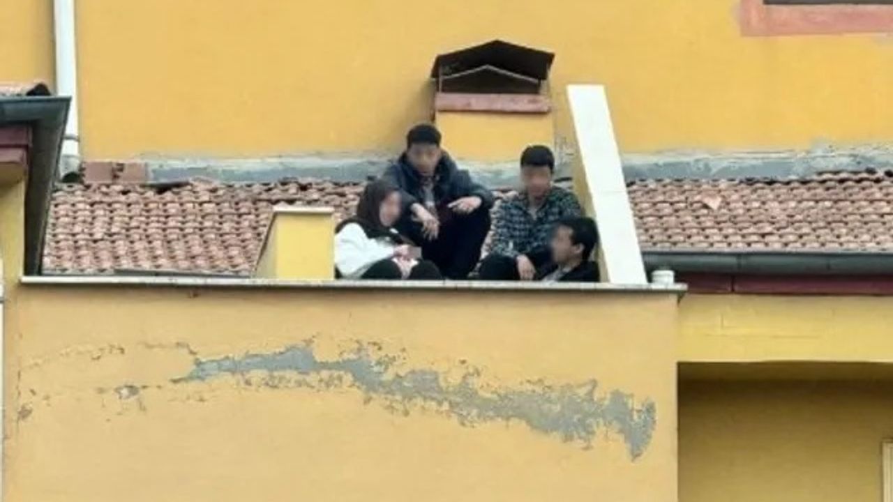 Edinilen bilgilere göre, öğretmenlerin sınıfta ders anlattığı bir sırada henüz kimlikleri belirlenemeyen 4 öğrenci, okulun çatısına çıkarak sigara içmeye başladı. Öğrenciler, korumasız bir alanda, adeta balkonda oturur gibi rahat tavırlarla zaman geçirirken, bu anlar cep telefonu kamerasıyla kaydedildi.