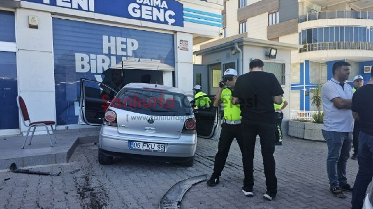 Şanlıurfa - Karaköprü yol güzergahında meydana gelen trafik kazasında, sürücüsünün kadın olduğu öğrenilen 06 FKU 98 plakalı otomobil, virajı alamayarak AK Parti İl Başkanlığı binasına çarptı.