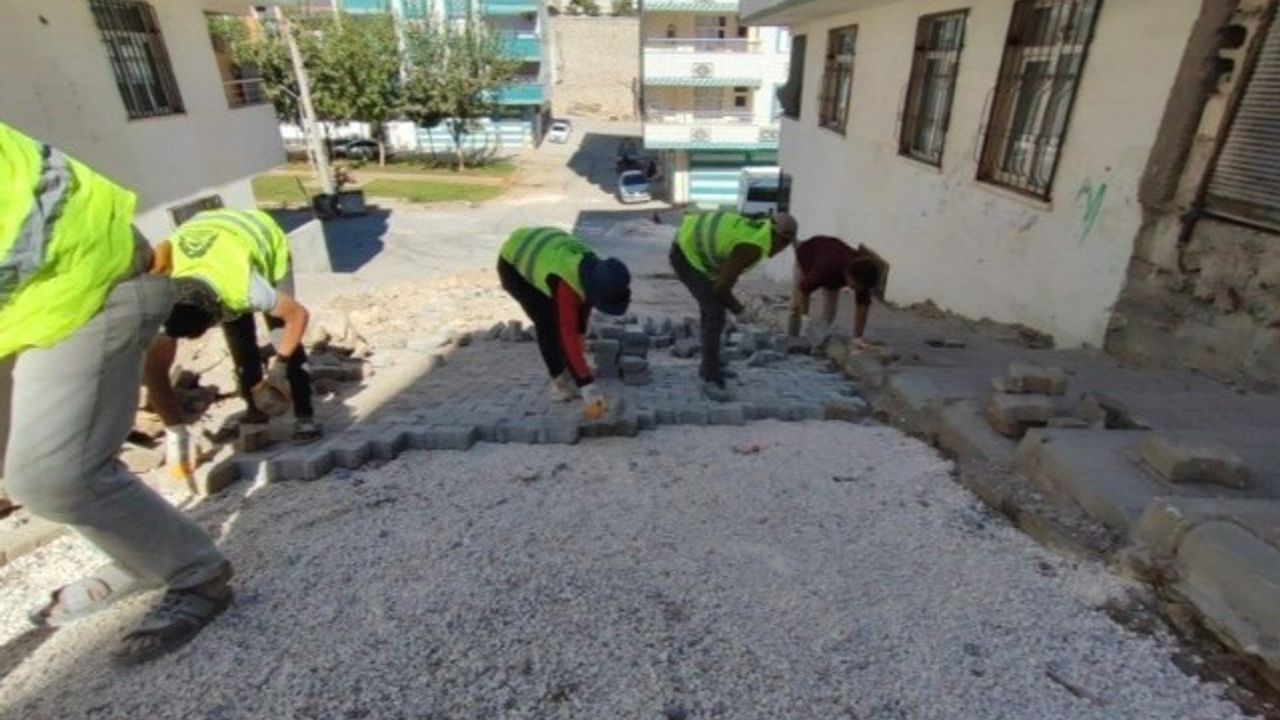 Eyyübiye Belediyesi Fen İşleri Müdürlüğü koordinesinde yürütülen yol yapım çalışmaları, dağlık kesimlerdeki mahallelerden dik ve zorlu sokaklara kadar ulaşıyor. Bazı dik sokaklara merdivenler inşa edilirken, altyapı hizmetlerinin iyileştirilmesi amacıyla yapılan kazı çalışmalarının ardından zemin düzenleme, malzeme serimi ve tesviye işlemleri gerçekleştiriliyor. Ardından kilitli parke taşları tek tek döşenerek sokaklar vatandaşın kullanımına sunuluyor.