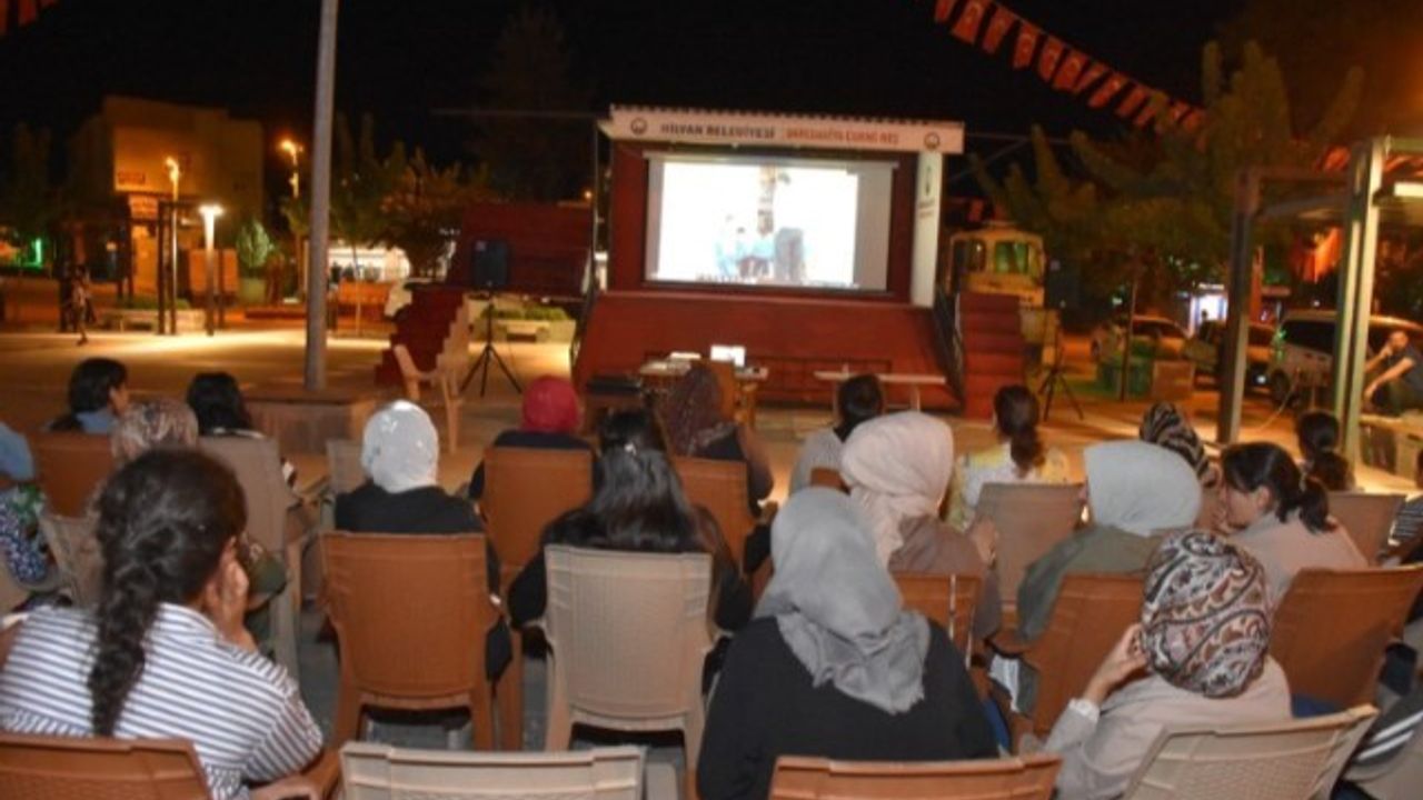 Hilvan Kent Meydanı"nda kurulan sinema alanında yurttaşlar aileleriyle birlikte keyifli bir akşam geçirdi.