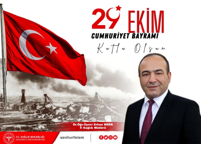 Şanlıurfa İl Sağlık Müdürü Dr. Öğr. Üyesi Erhan Berk, 29 Ekim Cumhuriyet Bayramı dolayısıyla yayımladığı mesajında şunları ifade etti: