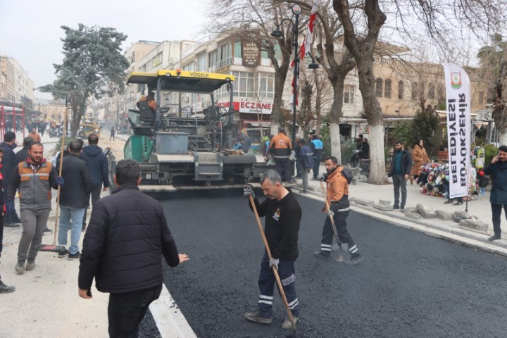 Şanlıurfa Büyükşehir Belediyesi tarafından hayata geçirilen Divanyolu Yayalaştırma Projesi kapsamında sıcak asfalt serimine başlandı.