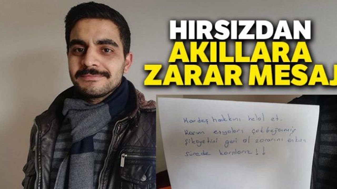 Mardin'in Artuklu ilçesinde bir iş yerini soyan hırsız, 50 bin liralık malzeme ile ortadan kayboldu. İş yeri sahibi olan Sertaç Orman, güvenlik güçlerine haber verdikten sonra kendi imkanlarıyla hırsızın peşine düştü. Hırsızın izini bulan Orman, aracılarla zanlıdan gelen 'karım eşyaları çok beğendi, şikayetini geri çek" notunu görünce neye uğradığını şaşırdı.