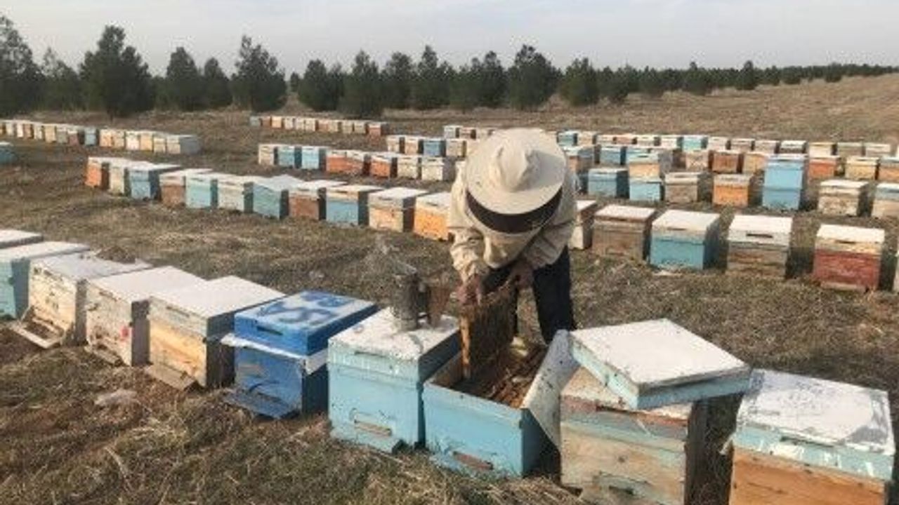 Mahmut Ergin isimli üretici, 2 farklı noktadaki 500 kovanda yaklaşık 2 ton bal üretiyor.
